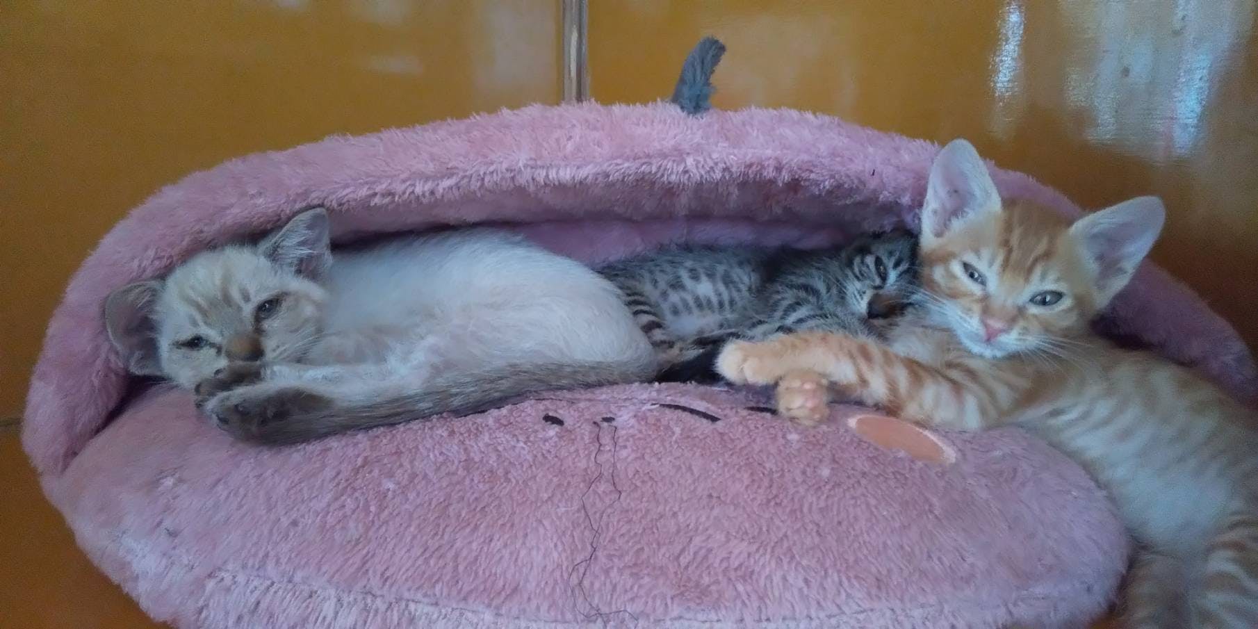 日頃からアニマルフレンドの活動にご協力を頂いている、個人ボランティアの方からの依頼を受け、3匹の仔猫ちゃん達の一時預かりをしました。