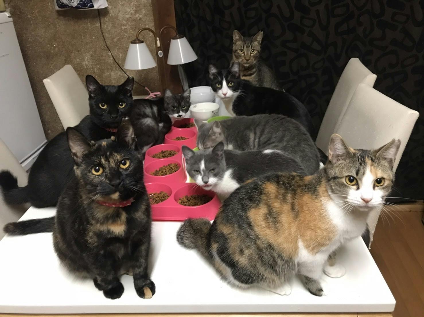 行き場のない猫達のために、一軒家を借りてシェルター(第2種動物保護施設の届け出済み)とし、現在43匹の猫達を保護しています。シェルターの保護猫達の健康維持の為に良質なフードを与える事、衛生面の向上のため、ウィルスの除菌に効果のあるグリーンアクアを使用した掃除や消毒の徹底を心がけています。