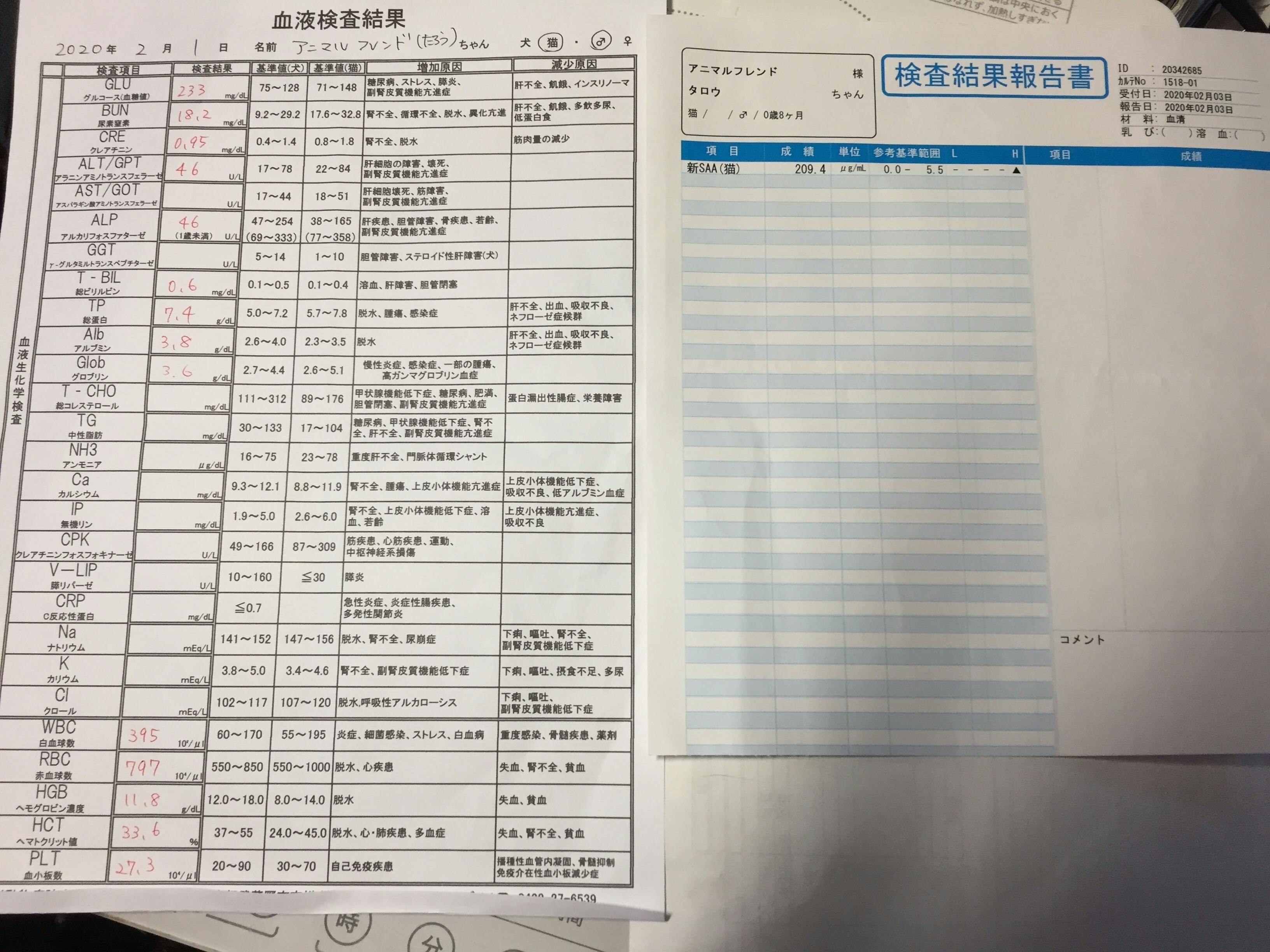 ⬇️タロ君の投薬前と投薬終了直前の血液検査の結果