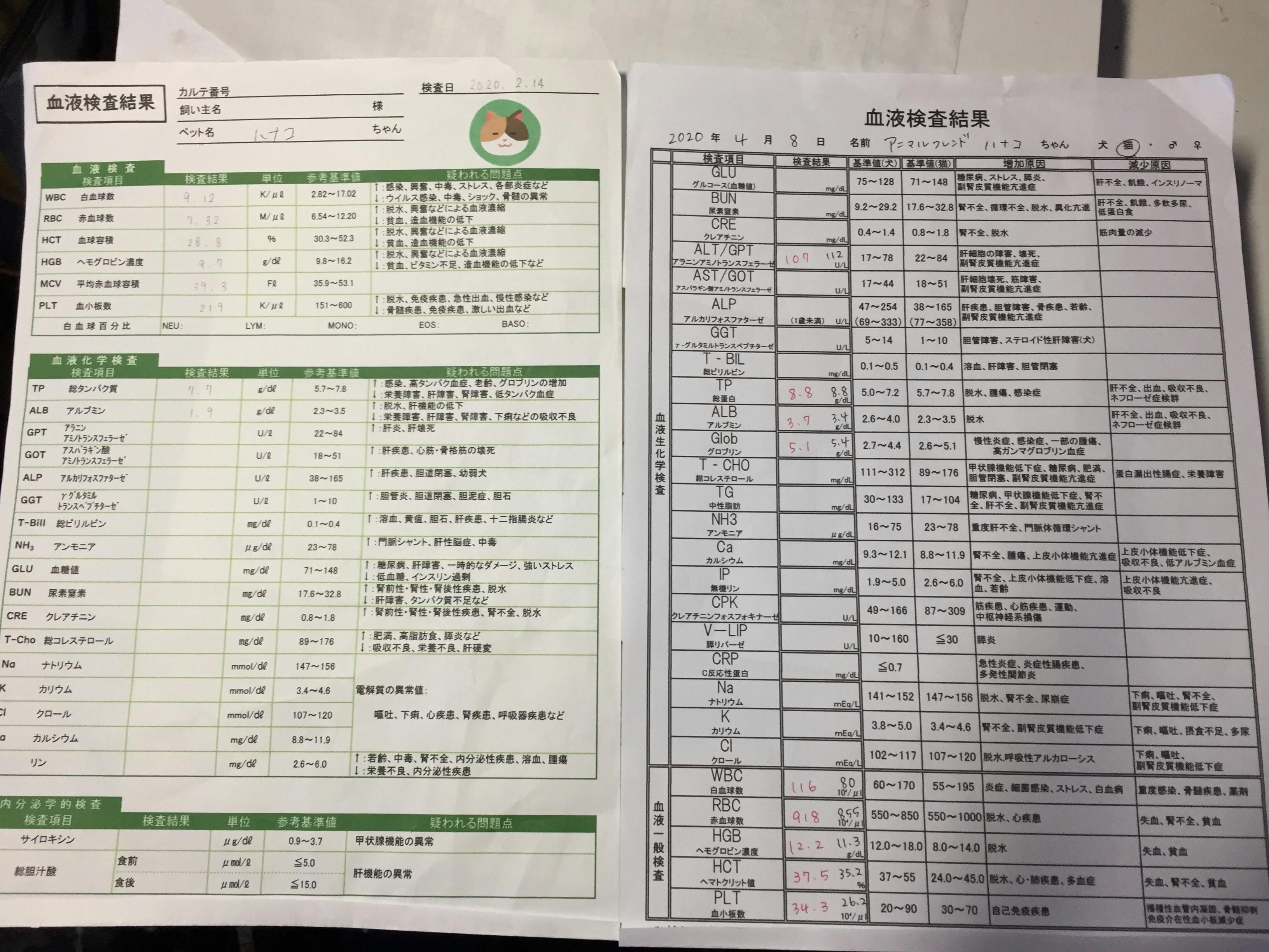 ⬇️ハナコちゃんの投薬前と.最新の血液検査の結果