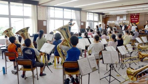 日々の練習においては、学校の通常業務も抱えており多忙な顧問の先生だけでは限界があり、子どもたちだけで練習をすることも多いそうです。そこで活躍するのが、各学校の卒業生や地域の吹奏楽団です。定期的に子どもたちの練習に顔を出したり、合同練習をしたりするそうですが、各パートを経験しているからこその身近でより親切なレクチャーは子どもたちにとっても非常にわかりやすく取り入れられ、その効果は絶大。