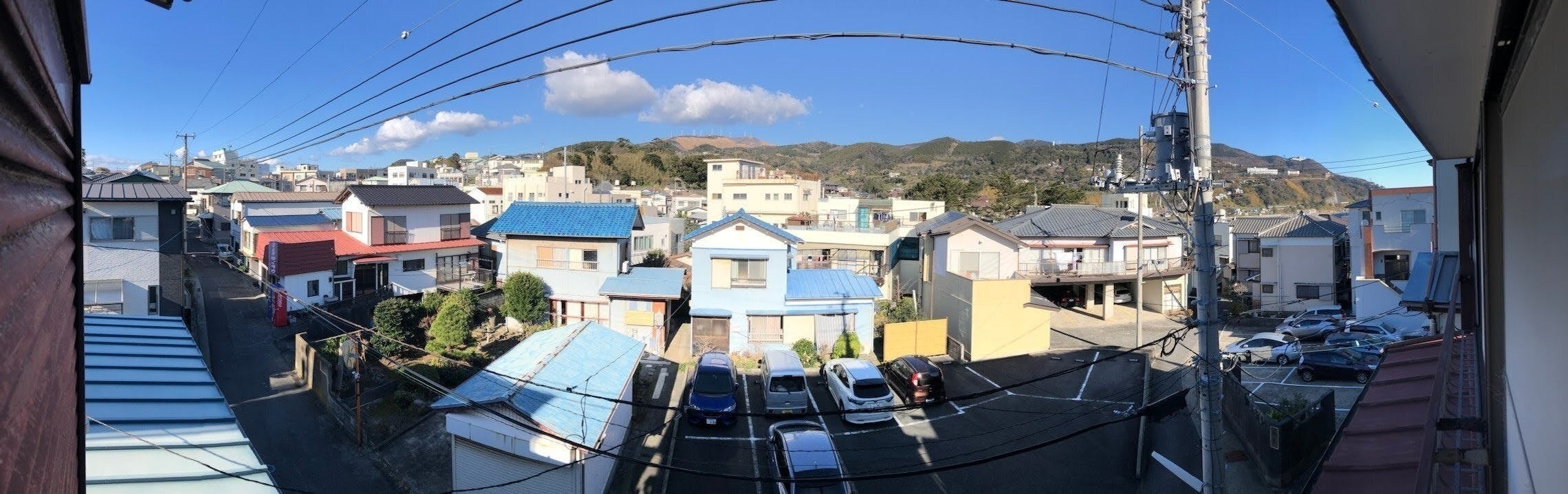 2Fからの眺望、町並み越しに細野高原を望む