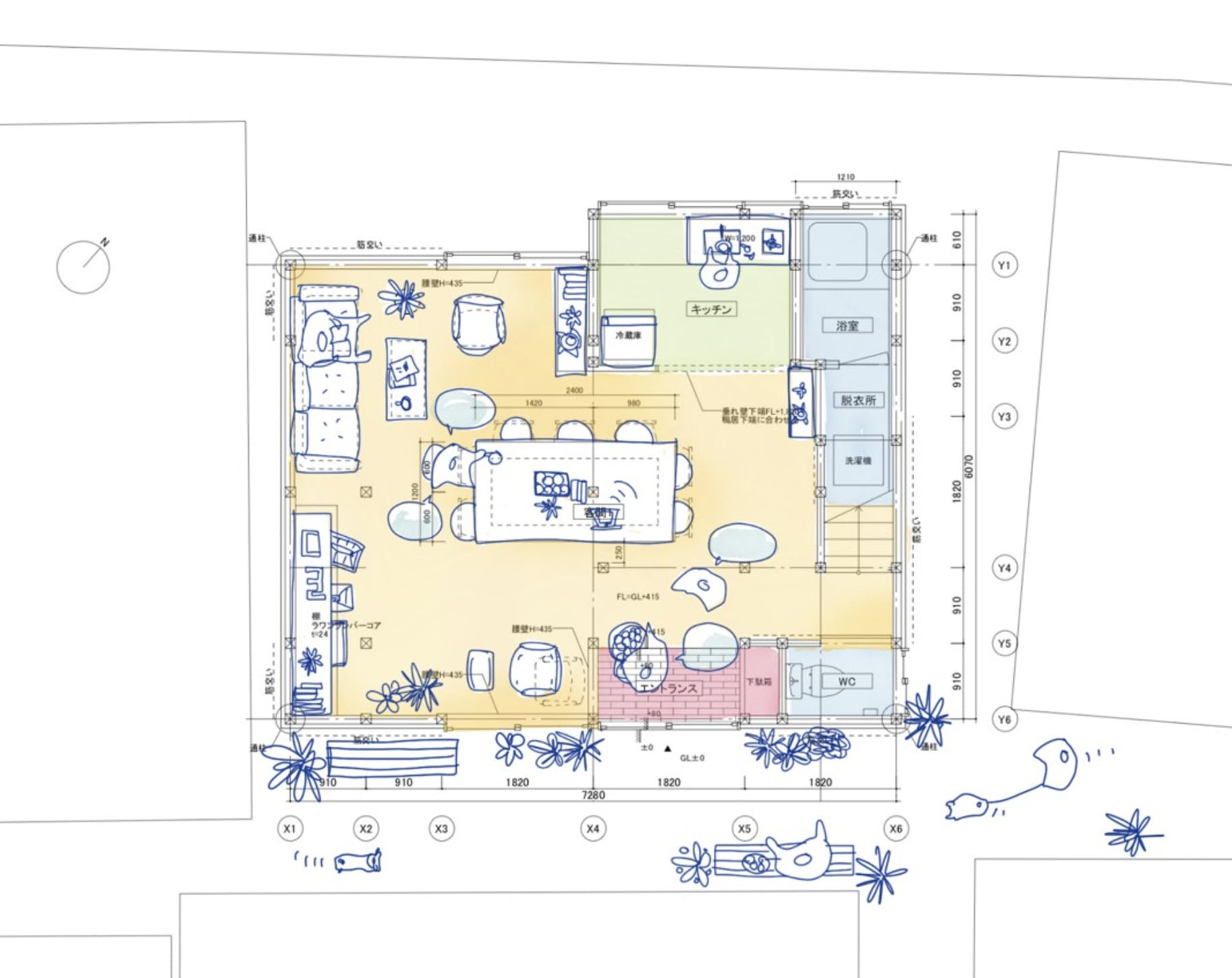 1F:路地の空間性を活かした「港町のリビング」