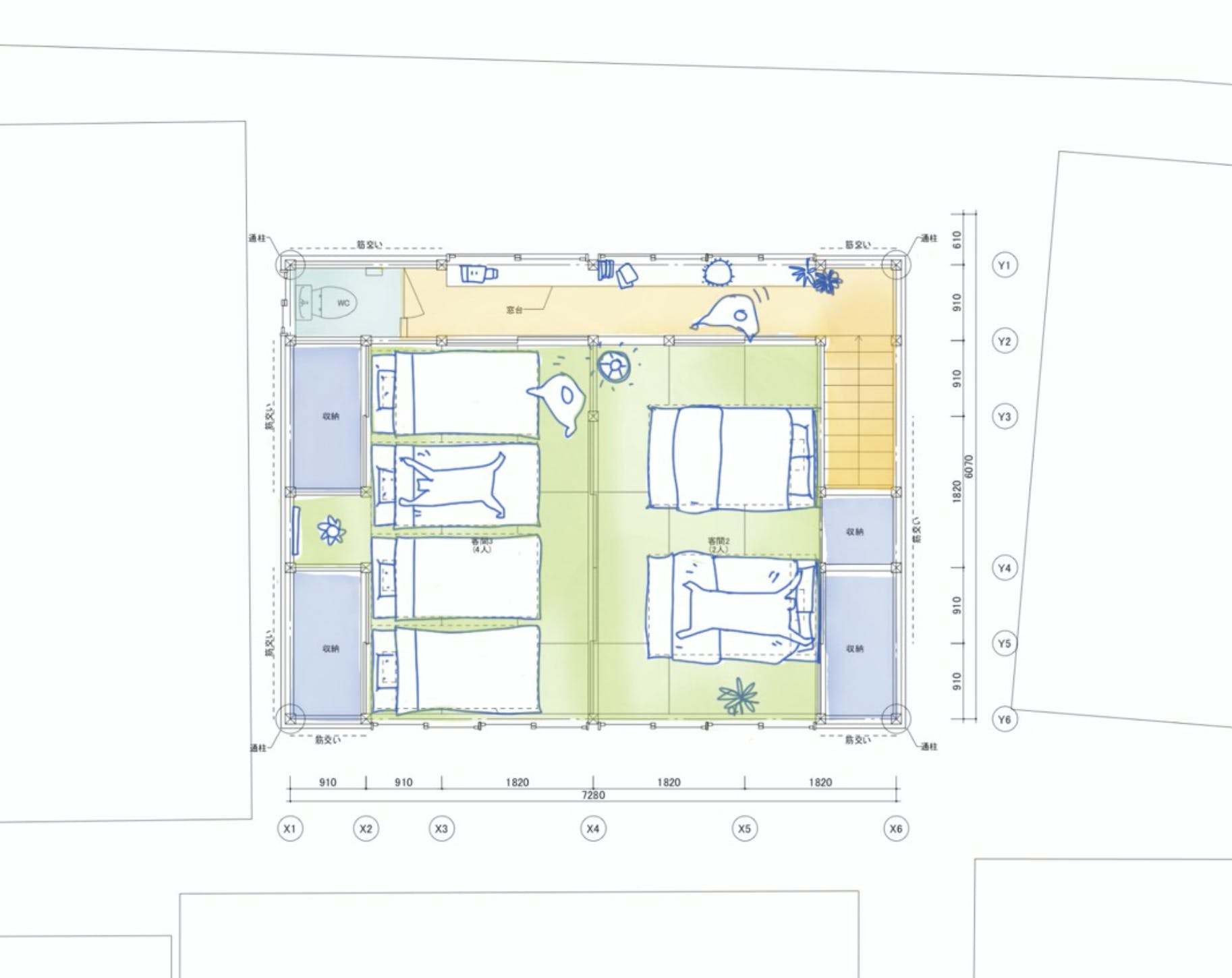 こちらでは、宿泊していただいた方に稲取の日常を体感してもらうための空間構成や宿泊サービスを提供していきます。