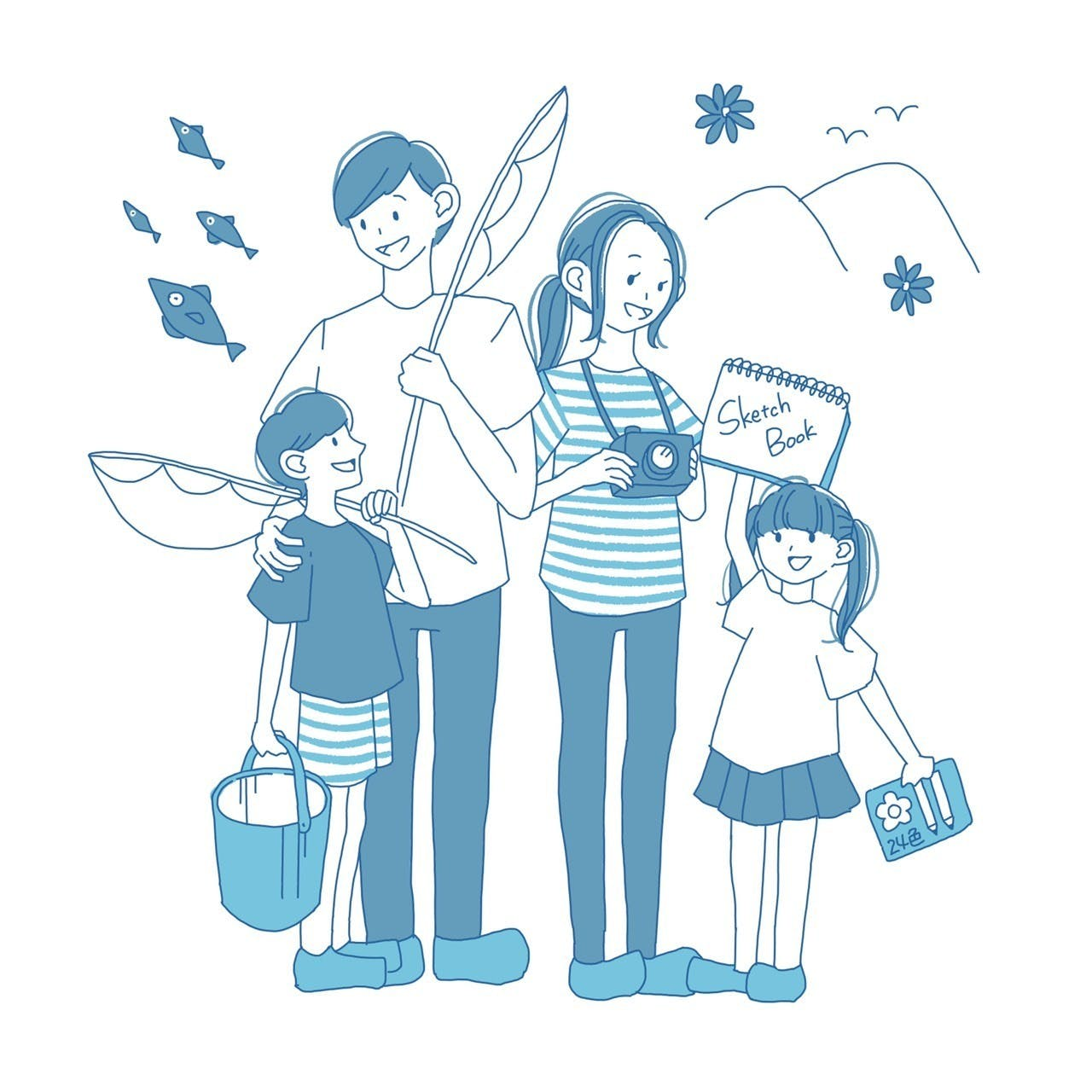 (カメラ・スケッチブック・釣り竿など)