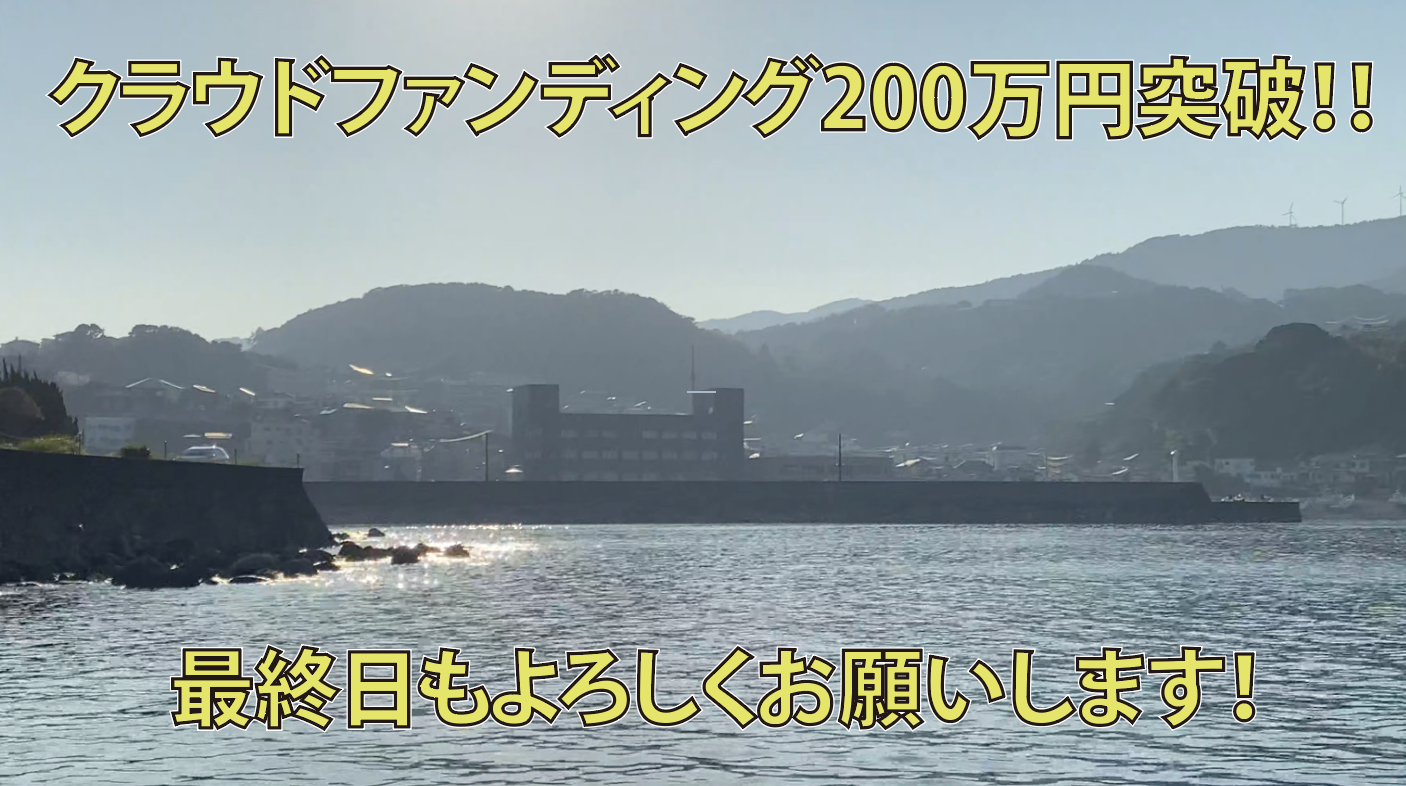 2020/08/16 10:45いよいよ我々のクラウドファンディングが最終日を迎えました!多くの皆様に応援いただきここまで来ることができました。目標に掲げたストレッチゴールは300万円。おかげさまで昨日支援金額の総額は200万円を超えることができました!このクラウドファンディングでの挑戦を通して多くの方々に稲取のこと、伊豆のこと、我々のこと知ってもらえたらと思っています!最終日ぜひぜひラストスパートでたくさんの情報拡散のご協力をお願いできたらと思います!どうぞ最後までよろしくお願いいたします!動画は200万円の大台に達成した喜びを体で表現したものになります。ストレッチゴール達成したらさらなる喜びを表現させていただきますので、ぜひそちらも楽しみに応援いただけたらありがたいです! もっと見る