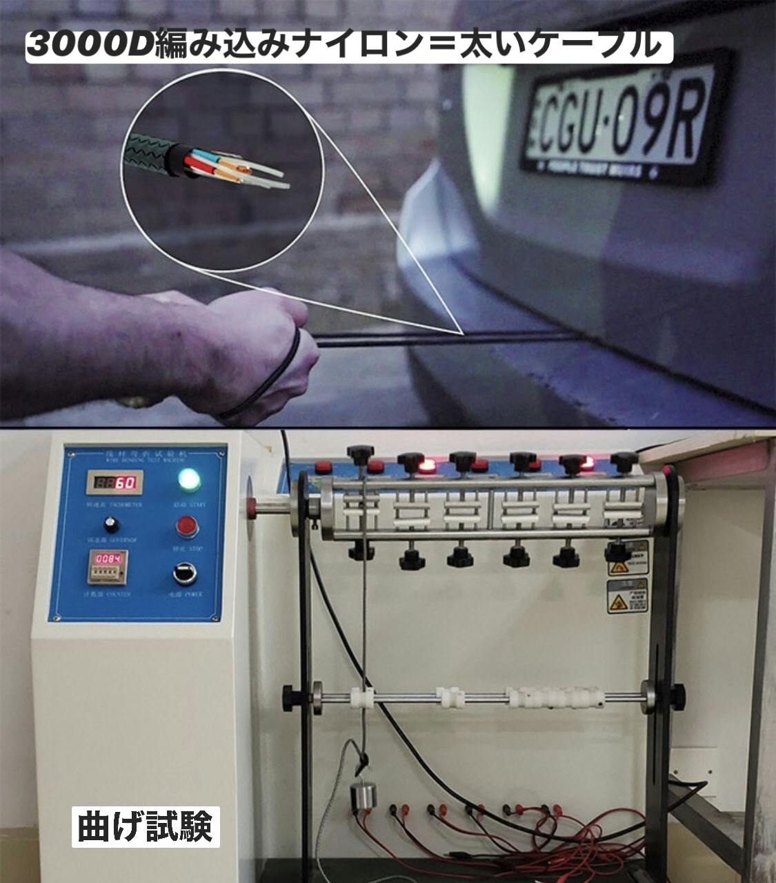また、インフィニティケーブルはケーブルの強度を上げるため4x 3000Dの編まれたナイロンも使用します。私たちは日常での厳しい状況下でも問題なく使用できるように、曲げ試験制御装置で最低でも15000回180度に曲げるテストを行いました。