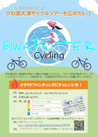 2017年3月31日より、クラウドファンディングサイト「CAMPFIRE(キャンプファイヤー)」にて、びわ湖大津の魅力を自転車で楽しむサイクリングマップやPRビデオを作成する費用を集めるファンディングをスタートしました!