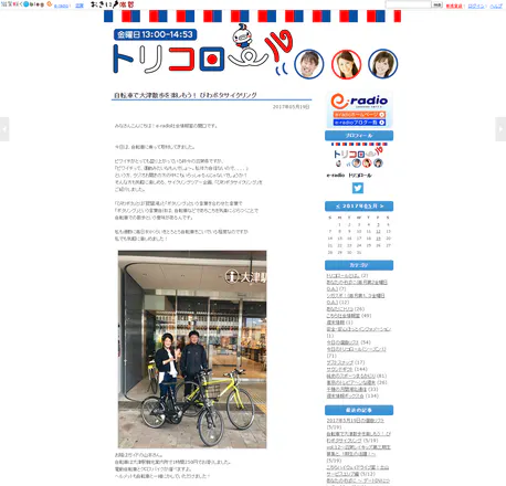 e-radio 「トリコロール」で、「自転車で大津散歩を楽しもう! びわポタサイクリング」として紹介されました。