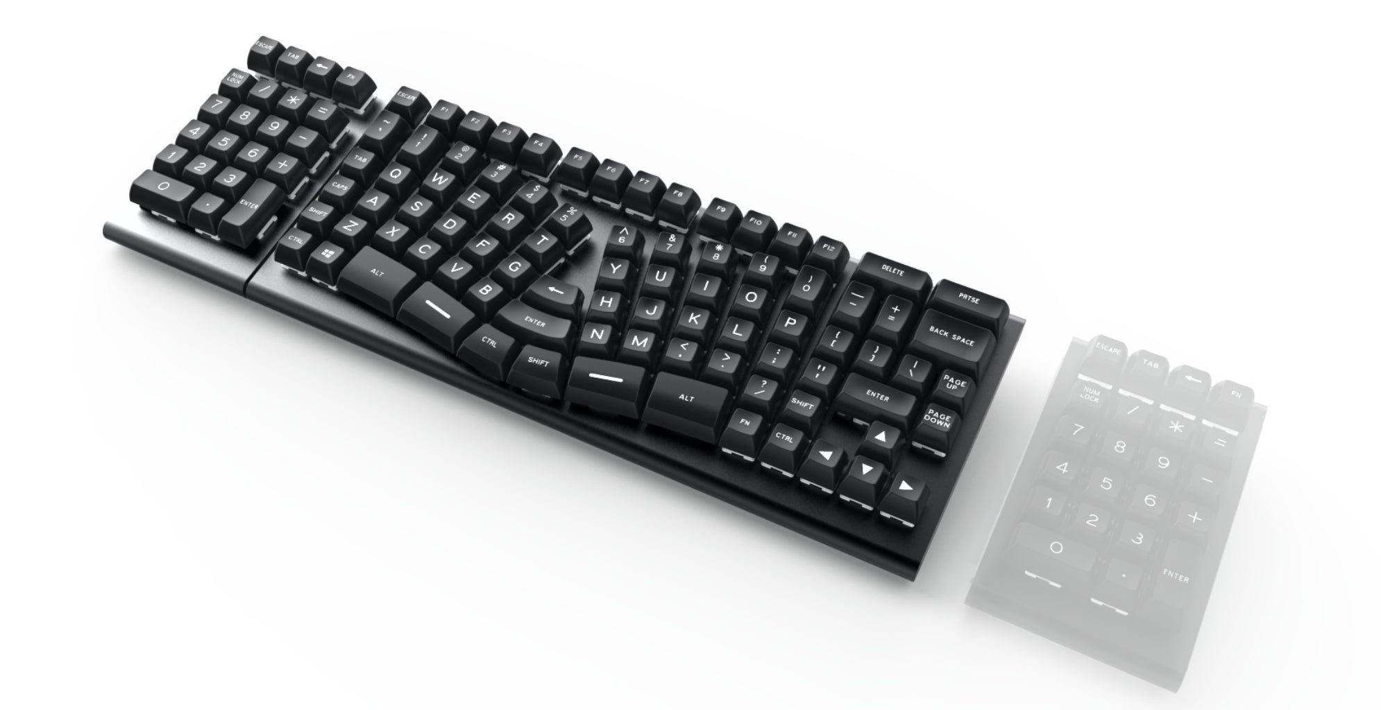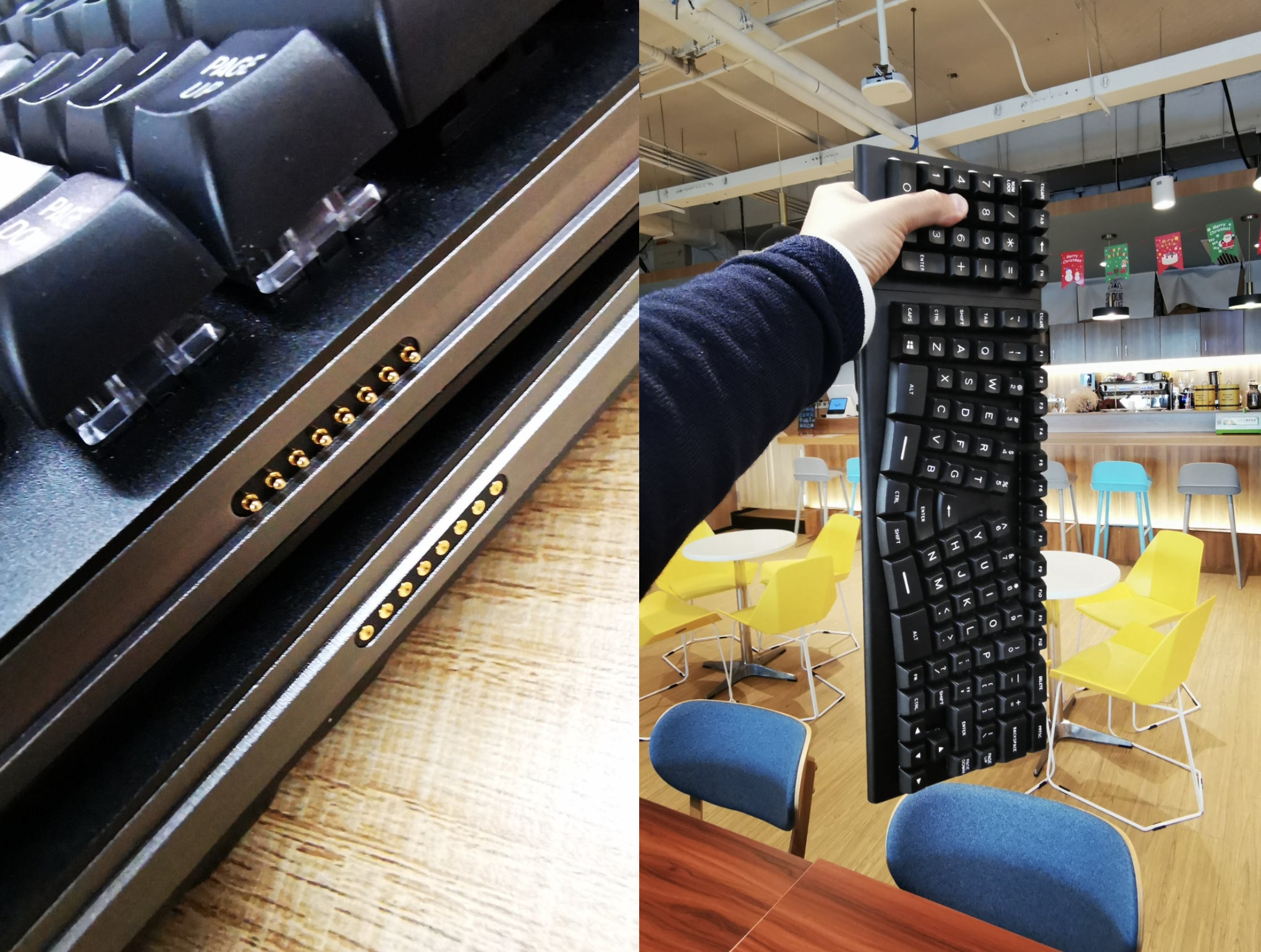 磁力によって固定する設計です。磁力は非常に強力で、強めのタイピングをしてもテンキーが動いたりする事はありません。