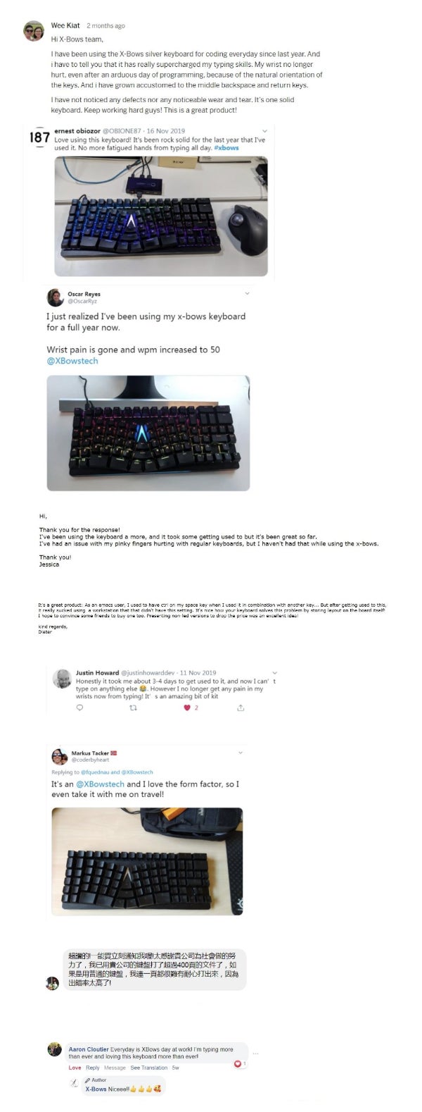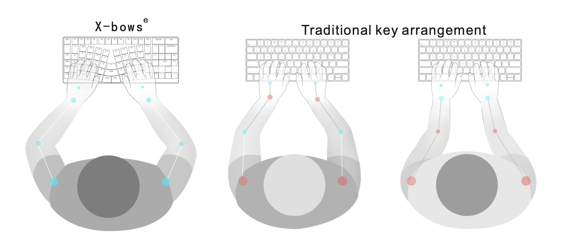X-BOWS KNIGHT Plusは、肩、肘、手首への負担を大幅に軽減します。従来のキーボードと比較するとその差は歴然です。