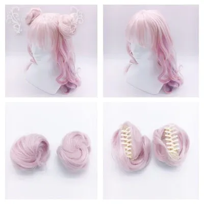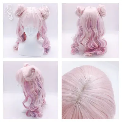 ユニコーンをイメージしたメルヘンウィッグ。毛先の何色も重ねたカールがポイント。両サイドのおだんごバングは取り外し可能です♪華やかにしたい時にピッタリです。簡単に理想の派手色カラーに。