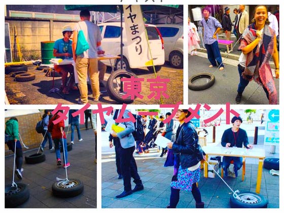 タイヤはどんな街でも落ちていることから地方の発表の場で便利。