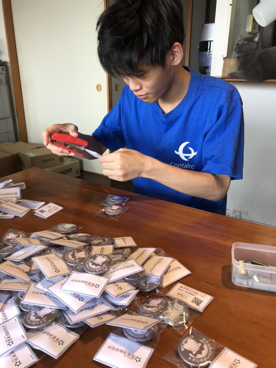 現在、リターンの缶バッジの発送準備をしています。家族に手伝ってもらいながら、不器用で戦力外の僕も頑張っています。これから梱包作業にはいります。お届けまでもう少しお待ちください。
