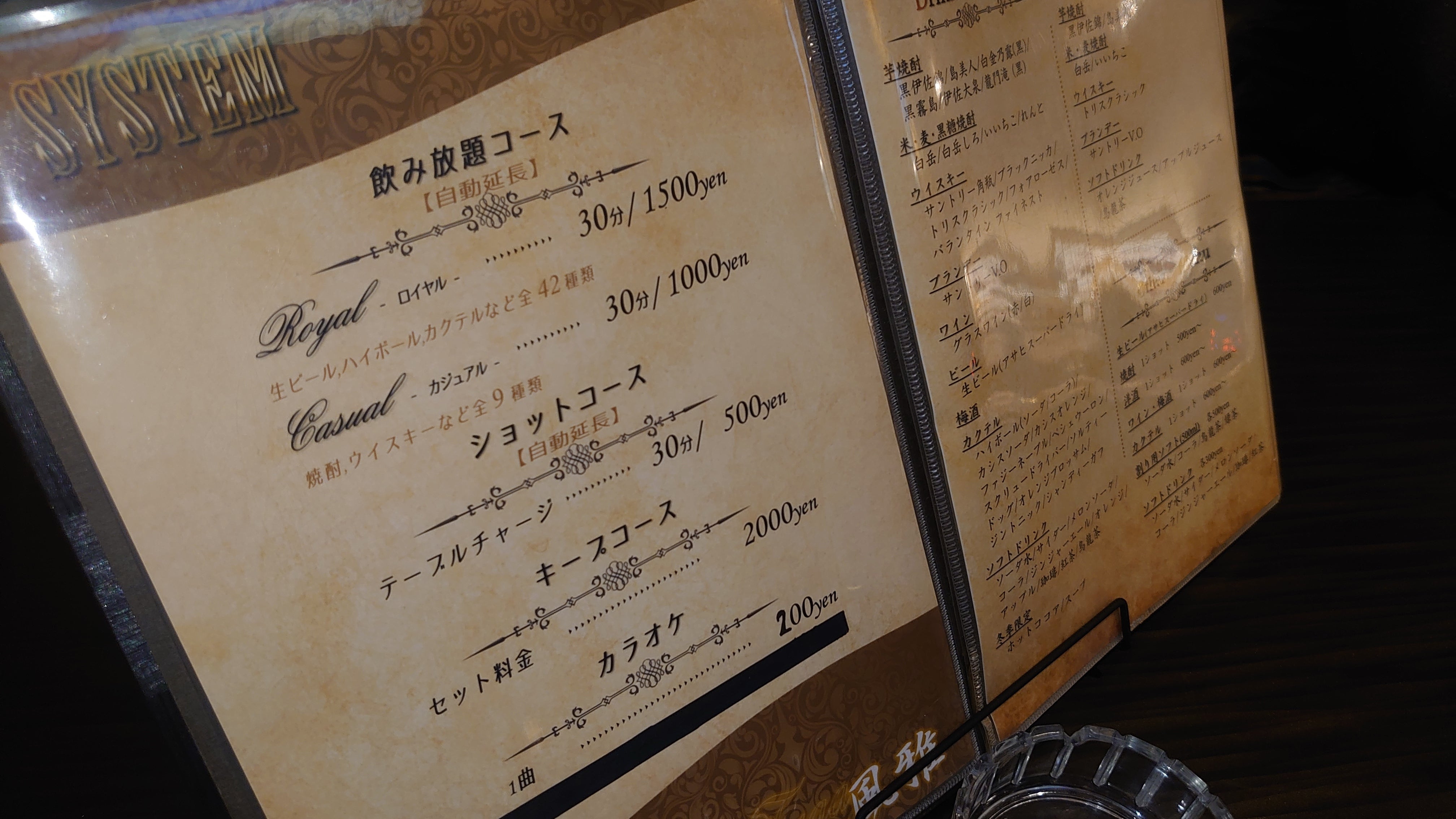 ↑当店のシステムメニュー