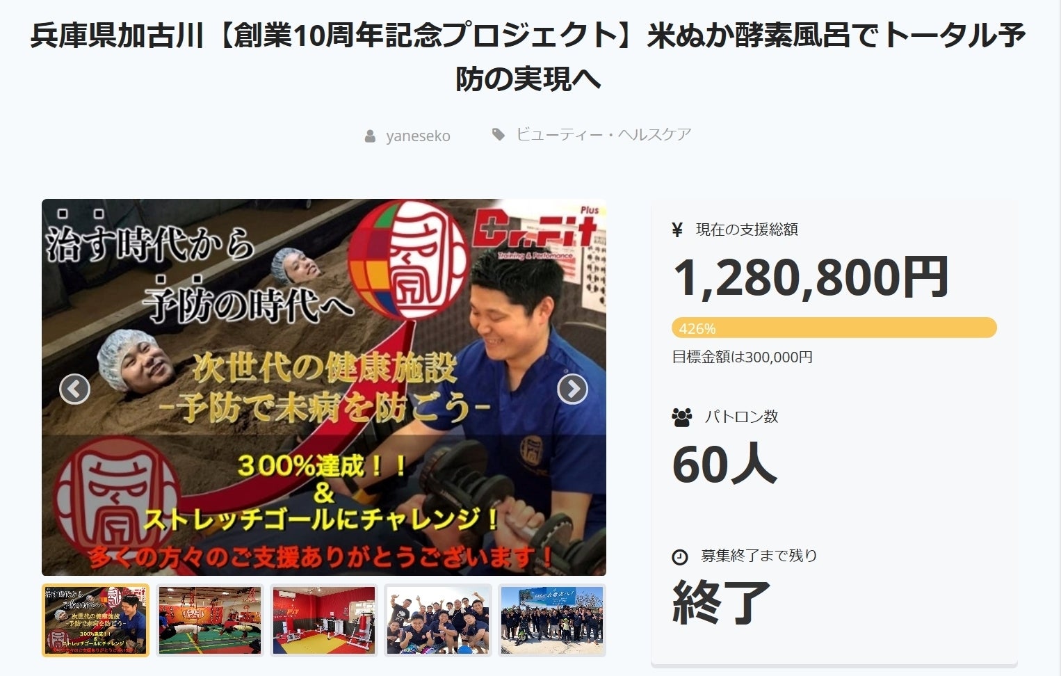 当時も初めてクラウドファンディングに挑戦させていただき426%の目標達成をすることができました。