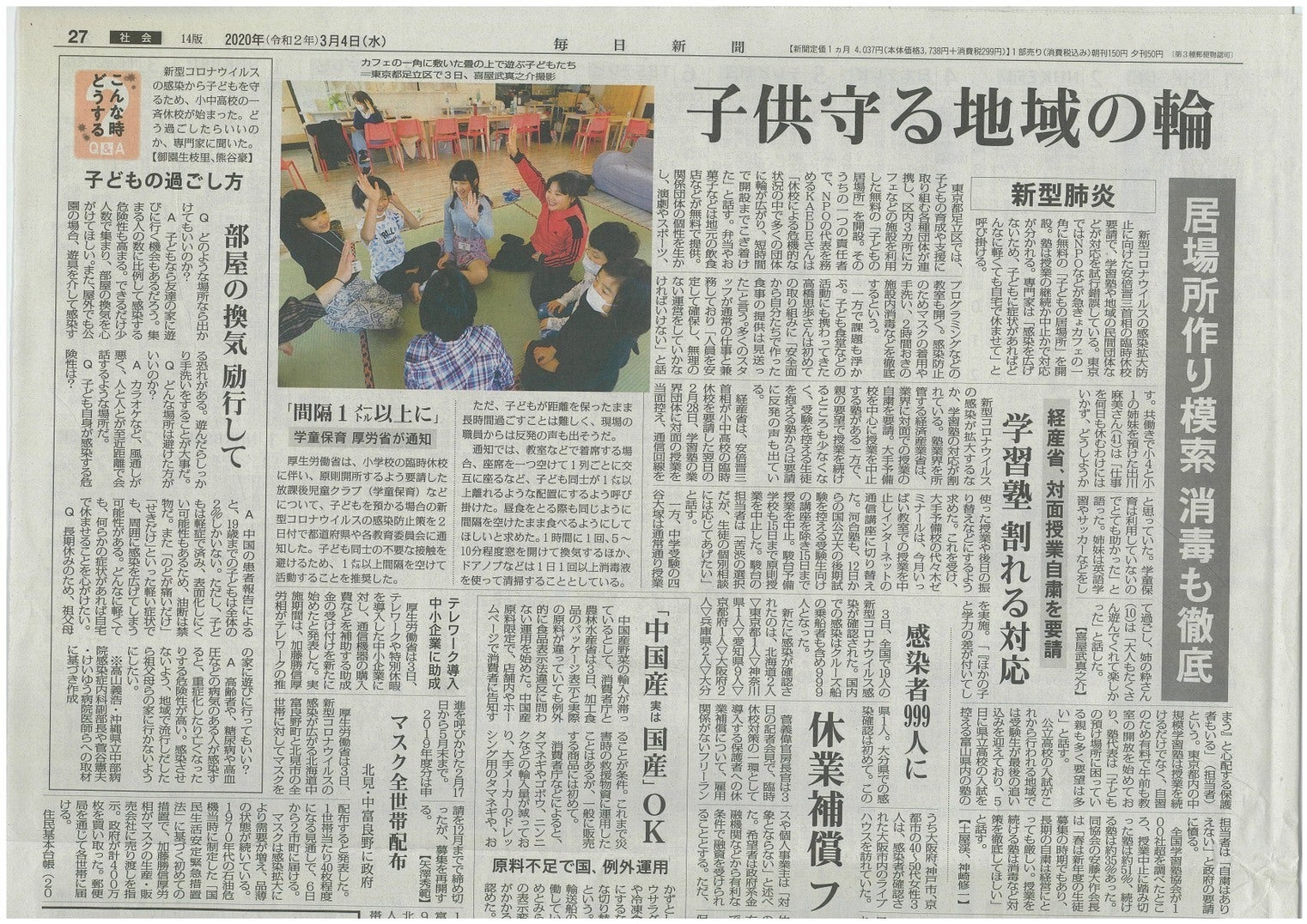 27日の発表後、「学校一斉休校って、親は休めないし子育て家庭は大パニックになるじゃん!やばいのでは!?!」と思ってCFAの代表の中山さんに「学童でも何かやりませんか!」と連絡したところ
