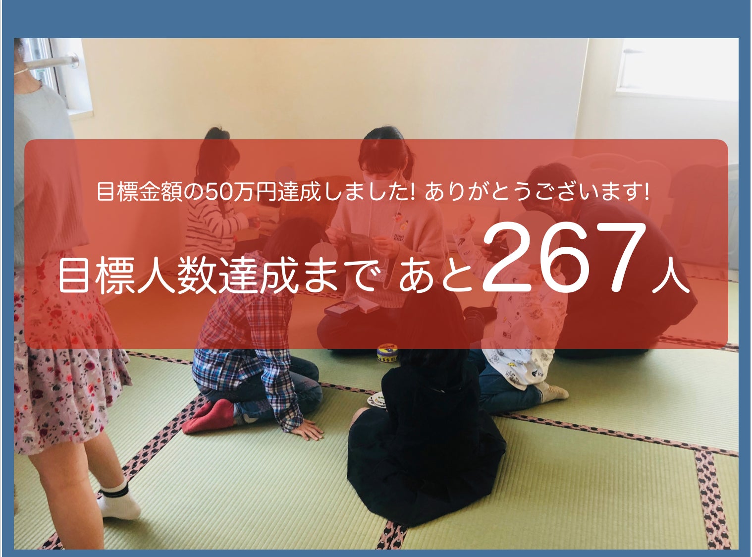 みなさんのおかげで、想像よりも早く50万円の目標金額を集めることができました!ありがとうございました!