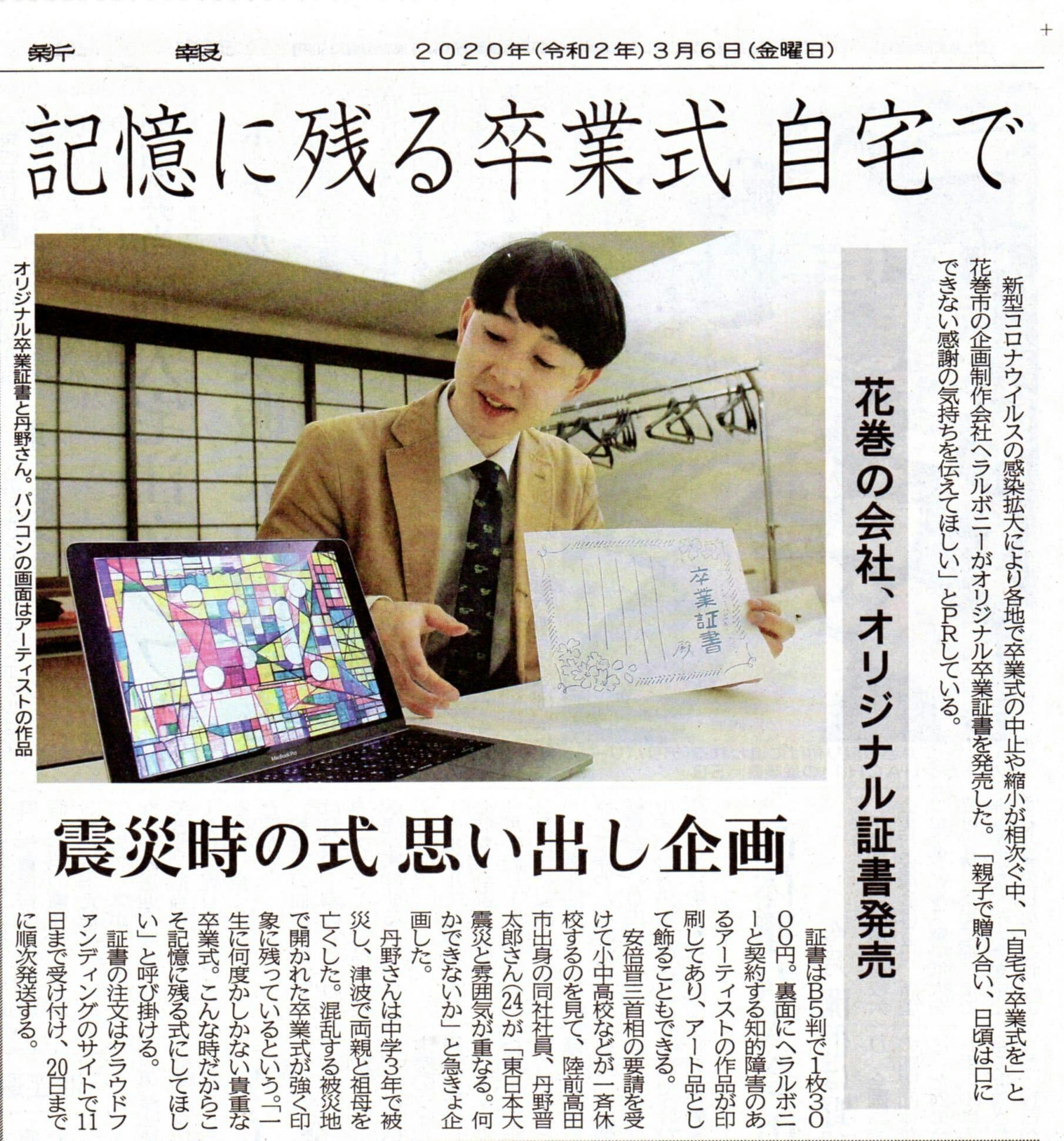 取材をして頂いた、河北新報社様にはこの場を借りて感謝申し上げます。