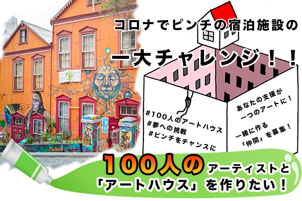 色々な経緯は後ほど詳しく記載させていただいていますが、この「100人のアートハウス」が完成したら、今度は逆に《観光・宿泊》業界の力で日本の《アート》業界を盛り上げる仕組みが作れたらと考えています!