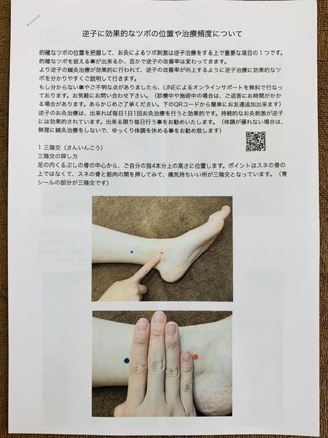 逆子に効果的なツボの位置が分かりやすく記載してあるテキスト