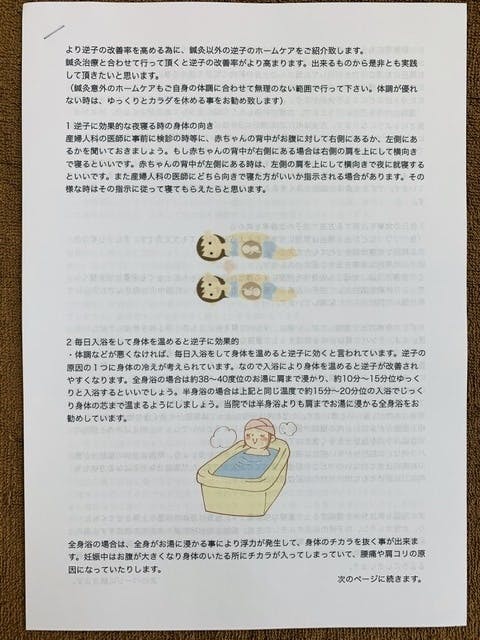 逆子に効果的なホームケアが記載してあるテキスト