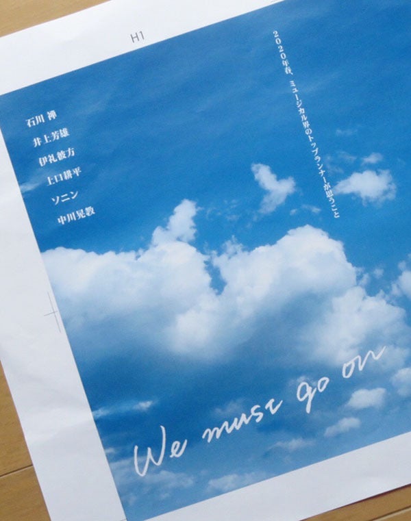 『WE MUST GO ON』、無事印刷所に入稿いたしました。刷り上がり&お手元に届くまで、もうしばらくお待ちください!本日は、コラムを本書にご寄稿いただいた方々のお名前を発表いたします。岡田育さん笠井信輔さん鈴木聡さん立川らく次さん西田シャトナーさんはるな檸檬さん三ツ矢雄二さんめまいがしそうなくらいの、豪華な顔ぶれがご寄稿くださいました!内容も、個性的かつ素敵なものばかり!ご期待ください。さらにコンテンツのひとつである<ミュージカルキャスト座談会>のメンバーも発表!今泉りえさんSarryさん山野靖博さんこの座談会、実は全コンテンツの中で一番文字数が多い記事となりました……読み応えたっぷりです。こちらもぜひ楽しみにしていてください。そして表紙をちら見せ……。私たち自身も、出来上がりを楽しみにしています。