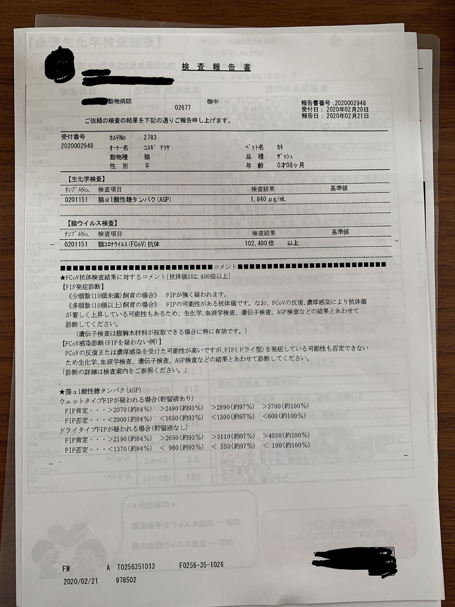 2020/06/19 23:49シャム柄ネコ、かきちゃんにたくさんのご支援をいただきまして大変ありがとうございます。【経過観察について】投薬期間を完了させたかきちゃんはその後の検査でも異常は見当たらず、引き続き経過観察の日々を続けています。下記の画像が検査結果になります。まだ再発の可能性が残されているため完全に安心できるわけではありませんが今回の「MUTIAN」での治療は成功し、正常な状態に回復できたことをご報告させていただきます。皆様のお力のおかげです。本当にありがとうございました。【収支報告】皆様からご支援いただきました支援金は下記の通り治療に使用させていただきました。 ご支援の総額:¥828,084【支出】(合計:¥ 1,396,137)手数料等引き去り:¥ - 154,887 MUTIAN代金:¥ -1,200,000 通院、検査費:¥ -41,250※下記、領収書に一部えびちゃんの治療費が記載してありますが計算から除外してあります。【収支】¥ -568,053ほんの一部、私たちの自費で補填しただけで治療を終えることができました。大半を皆様からのご支援で賄っていただいたこと、感謝してもしきれません。少しでも皆様への恩返しができるようにリターンの発送を引き続き行ってまいります。現在かきちゃんは元気すぎるくらい大暴れして遊ぶようになり、先輩猫のえびちゃんにはベッタリ甘えますが、人間の抱っこにはまだ慣れてくれません(笑)しかし、このような猫たちとの楽しい日常を皆様からいただくことができ、この上ない幸せを感じています。今後も経過観察のご報告をさせていただきますのでお付き合いいただければ幸いです。よろしくお願いいたします。 もっと見る