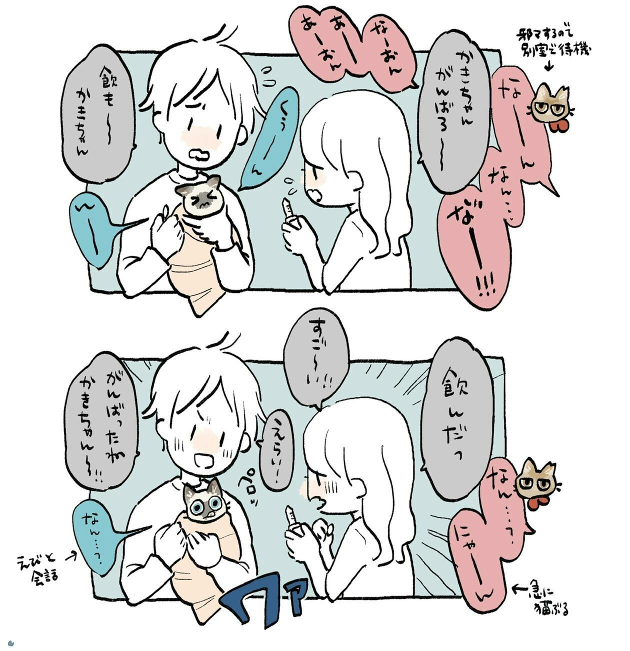 食欲も旺盛で、元気いっぱいに遊びまわり、時々えびちゃんと喧嘩をして(笑)、以前の日常が戻ってきて毎日癒されています。