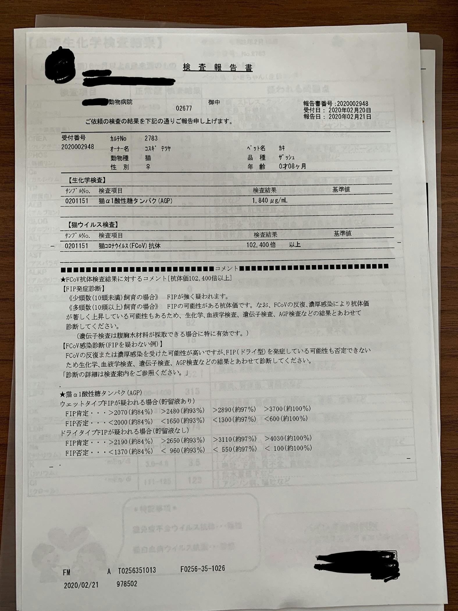 2020/06/19 23:49シャム柄ネコ、かきちゃんにたくさんのご支援をいただきまして大変ありがとうございます。【経過観察について】投薬期間を完了させたかきちゃんはその後の検査でも異常は見当たらず、引き続き経過観察の日々を続けています。下記の画像が検査結果になります。まだ再発の可能性が残されているため完全に安心できるわけではありませんが今回の「MUTIAN」での治療は成功し、正常な状態に回復できたことをご報告させていただきます。皆様のお力のおかげです。本当にありがとうございました。【収支報告】皆様からご支援いただきました支援金は下記の通り治療に使用させていただきました。 ご支援の総額:¥828,084【支出】(合計:¥ 1,396,137)手数料等引き去り:¥ - 154,887 MUTIAN代金:¥ -1,200,000 通院、検査費:¥ -41,250※下記、領収書に一部えびちゃんの治療費が記載してありますが計算から除外してあります。【収支】¥ -568,053ほんの一部、私たちの自費で補填しただけで治療を終えることができました。大半を皆様からのご支援で賄っていただいたこと、感謝してもしきれません。少しでも皆様への恩返しができるようにリターンの発送を引き続き行ってまいります。現在かきちゃんは元気すぎるくらい大暴れして遊ぶようになり、先輩猫のえびちゃんにはベッタリ甘えますが、人間の抱っこにはまだ慣れてくれません(笑)しかし、このような猫たちとの楽しい日常を皆様からいただくことができ、この上ない幸せを感じています。今後も経過観察のご報告をさせていただきますのでお付き合いいただければ幸いです。よろしくお願いいたします。 もっと見る