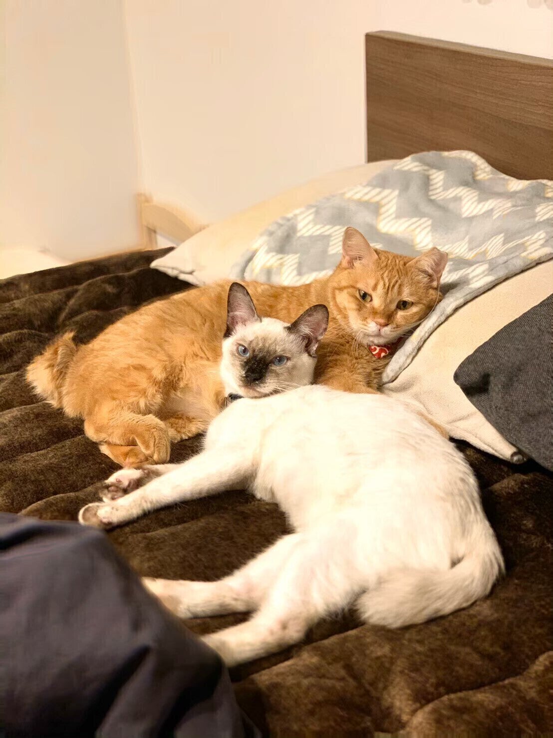 2020/07/24 14:48最近のかきちゃんは相変わらず先輩猫のえびちゃんにべったりくっ付いてます。仲が良くて何よりです!健康状態も少し太り気味になった以外は全く問題ありません!獣医さんからは「FIPになったのに太るなんて奇跡ですよ」なんて言ってもらえました。投薬の時にかきちゃんを捕まえて押さえておく係だった私は長い間警戒されてましたが最近はだいぶ油断してくれるようになりました。この調子で懐いてくれることを願うばかりです。近々また健康診断に行きますのでまた報告します! もっと見る