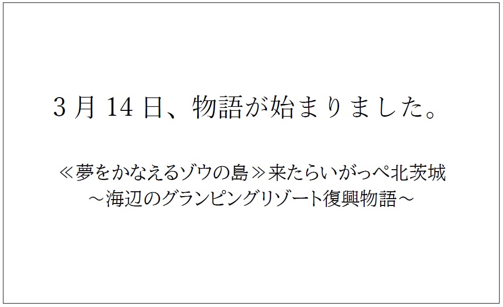 昨日の正午に、メイズムランドがチャレンジするクラウドファンディング≪夢をかなえるゾウの島≫来たらいがっぺ北茨城〜海辺のグランピングリゾート復興物語~がスタートしました。