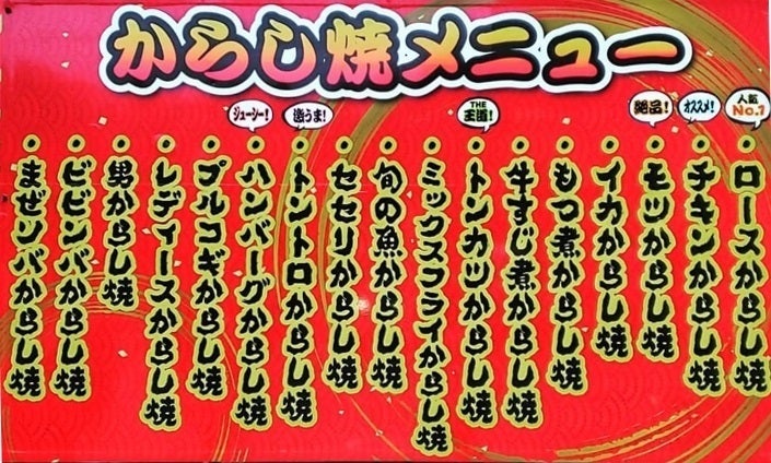 からし焼きは17種類のメニューから選べます。