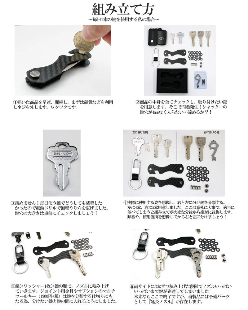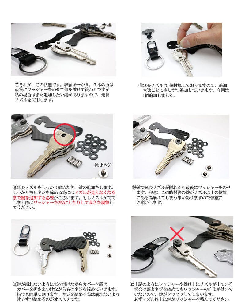 基本ネジで鍵を7本収納できますが、延長ネジを使えば最大16本まで段階的に鍵を収納することができます。