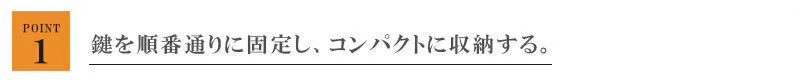 ②両サイドの鍵が折り重なるよう収納することで無駄のないスペース造りを実現。