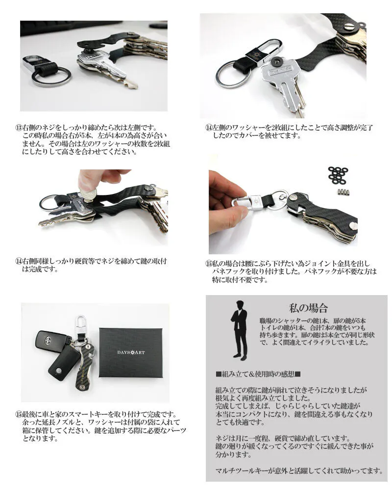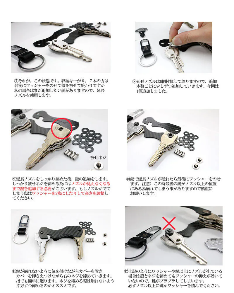 ※鍵が少ない場合は余ったワッシャーを入れて隙間を埋めてください。
