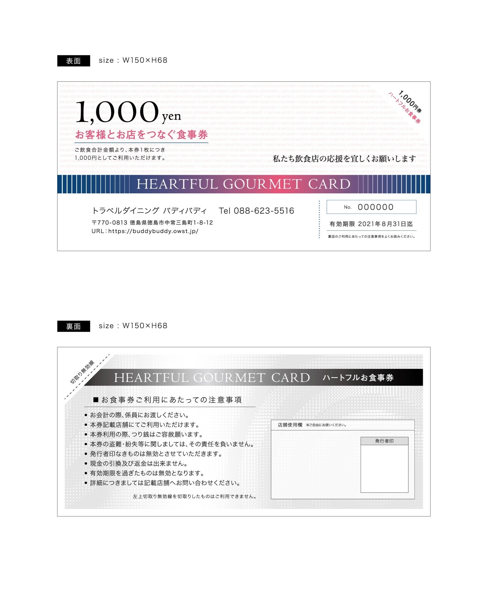 リターンのお食事券を無料で制作して頂きました。ご支援頂いた方には、プロジェクト終了後に順次発送致します。