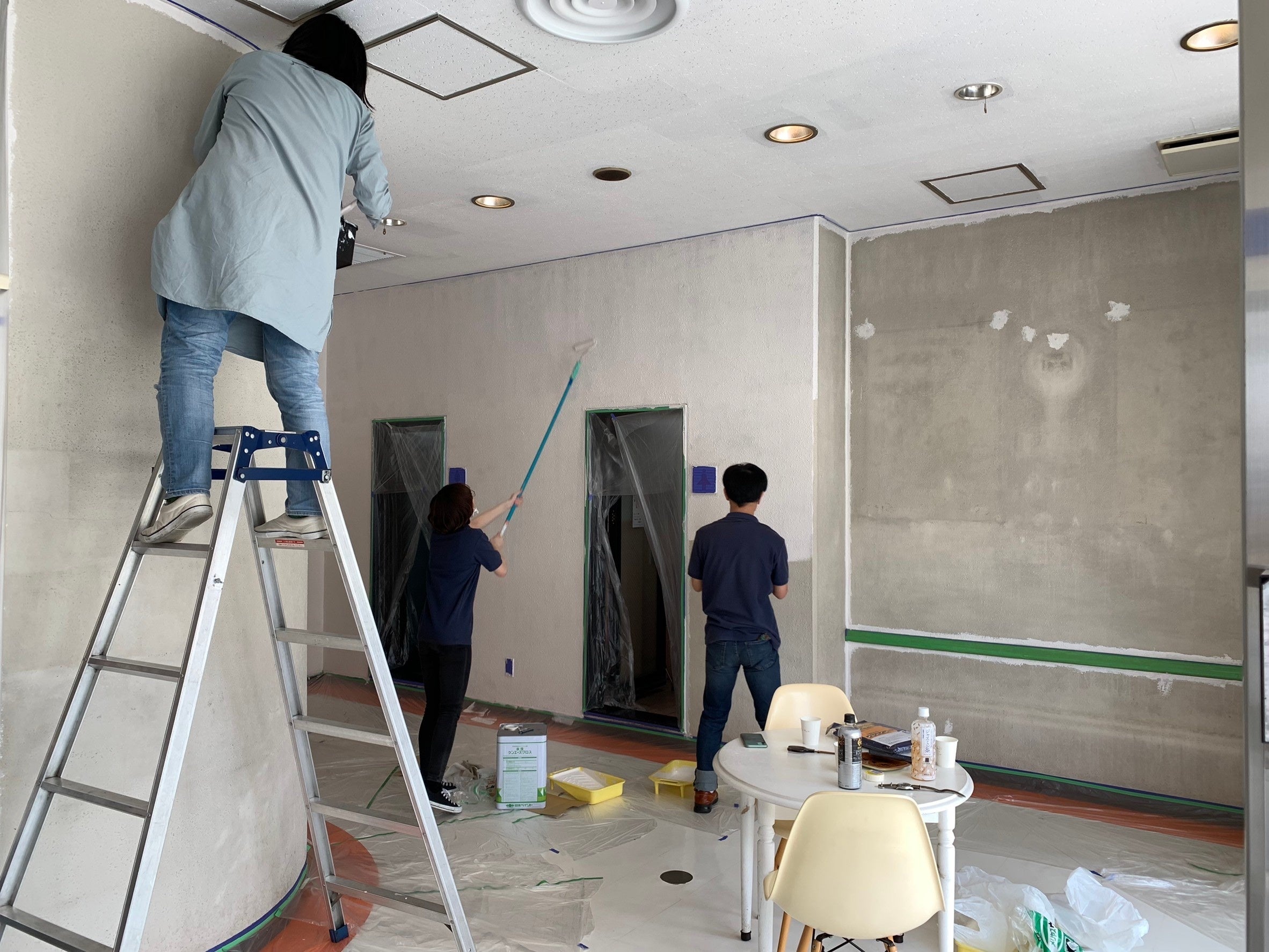 ↓壁を塗るスタッフ