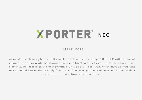 そして、今回、初代バージョン「XPORTER」 iPhone 5シリーズ専用モデルの利用者の方々や、東京マラソンEXPOやINTER STYLEなど様々な展示会でお会いした方々からいただいた意見やフィードバックを活かし、更に進化させた商品が次世代「XPORTER-NEO」です。