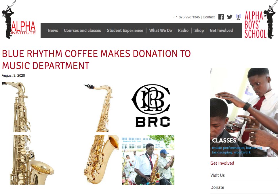 2020/08/05 12:00梅雨も明けいよいよ夏本番を迎えている季節ですが、皆さまいかがお過ごしでしょうか?前回の活動報告にてジャマイカの音楽学校【ALPHA BOYS' SCHOOL】さまへ皆さまからご協力をいただいた支援金を寄付させていただいた旨を活動報告として報告させていただきました。その中でお伝えした通り資金はアーティストを志す学生の使用する楽器の購入費へあてていただくことを学校側に了承していただき、8月4日付けでALPHA BOYS' SCHOOLさまのホームページにて購入した楽器とともに今回のプロジェクトの詳しい内容を掲載していただきました。以下掲載写真今回の寄付金つきBLUE RHYTHM COFFEEの販売を通して寄付した資金で二つのテナーサックスと二つのアルトサックスの購入にあてていただきました。こちらから掲載ベージへ直接いけますので、ぜひご覧ください。BLUE RHYTHM COFFEE MAKES DONATION TO MUSIC DEPARTMENT担当者の方との話の中で、「遠く離れた日本からジャマイカの音楽の未来を支えるプロジェクトに参加していただいた皆さまに心より感謝いたします」とのお言葉をいただきました。あらためまして、自分もこのプロジェクトを実現できて本当に良かったと心から思えました。皆さまの多大なるご協力により実現したこのプロジェクトは決して自分1人では成し得ることができませんでした。皆さま本当にありがとうございました。これからもBLUE RHYTHM COFFEEはALPHA BOYS' SCHOOLさまへ寄付を届ける寄付つき珈琲の販売を続け、微力ながら日本とジャマイカの架け橋になれるように努力していきますので、引き続きよろしくお願いいたします。出店やインターネットショップなどのBLUE RHYTHM COFFEEの活動内容はインスタグラムにて更新しておりますので、ぜひフォローよろしくお願いいたします。BLUE RHYTHM COFFEE ON INSTAGRAM もっと見る