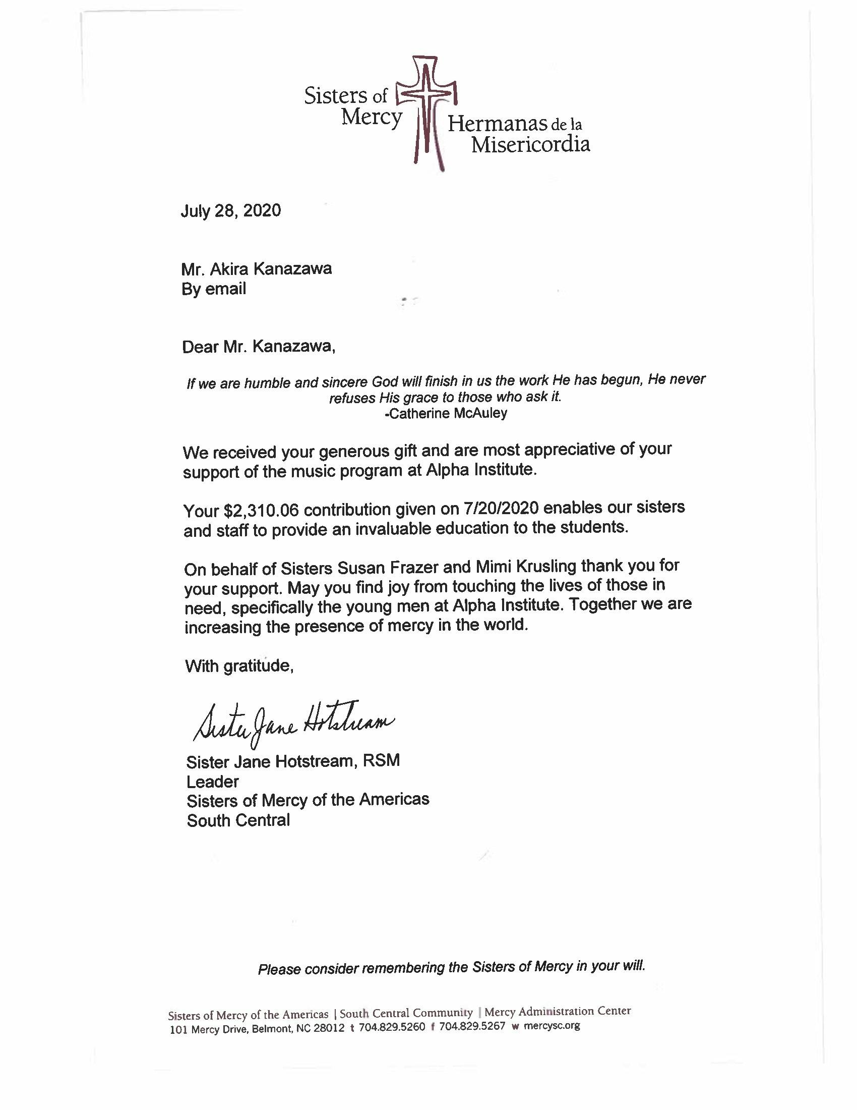 ALPHA BOYS' SCHOOLから感謝状が届きました!