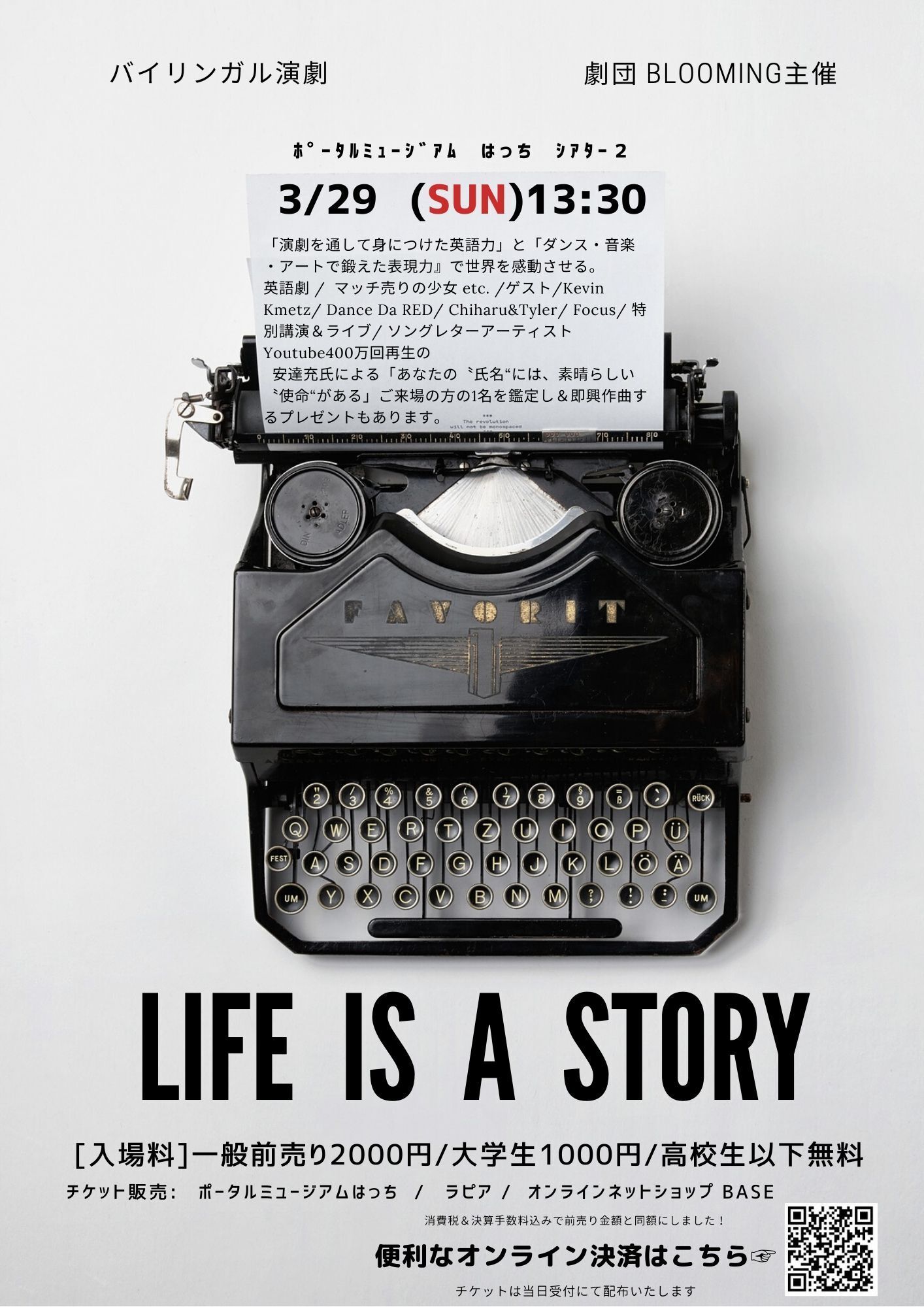 【2000円リターン】3/29 (日) "LIFE IS A STORY" 公演動画(英語劇ダイジェスト版&メイキング映像)