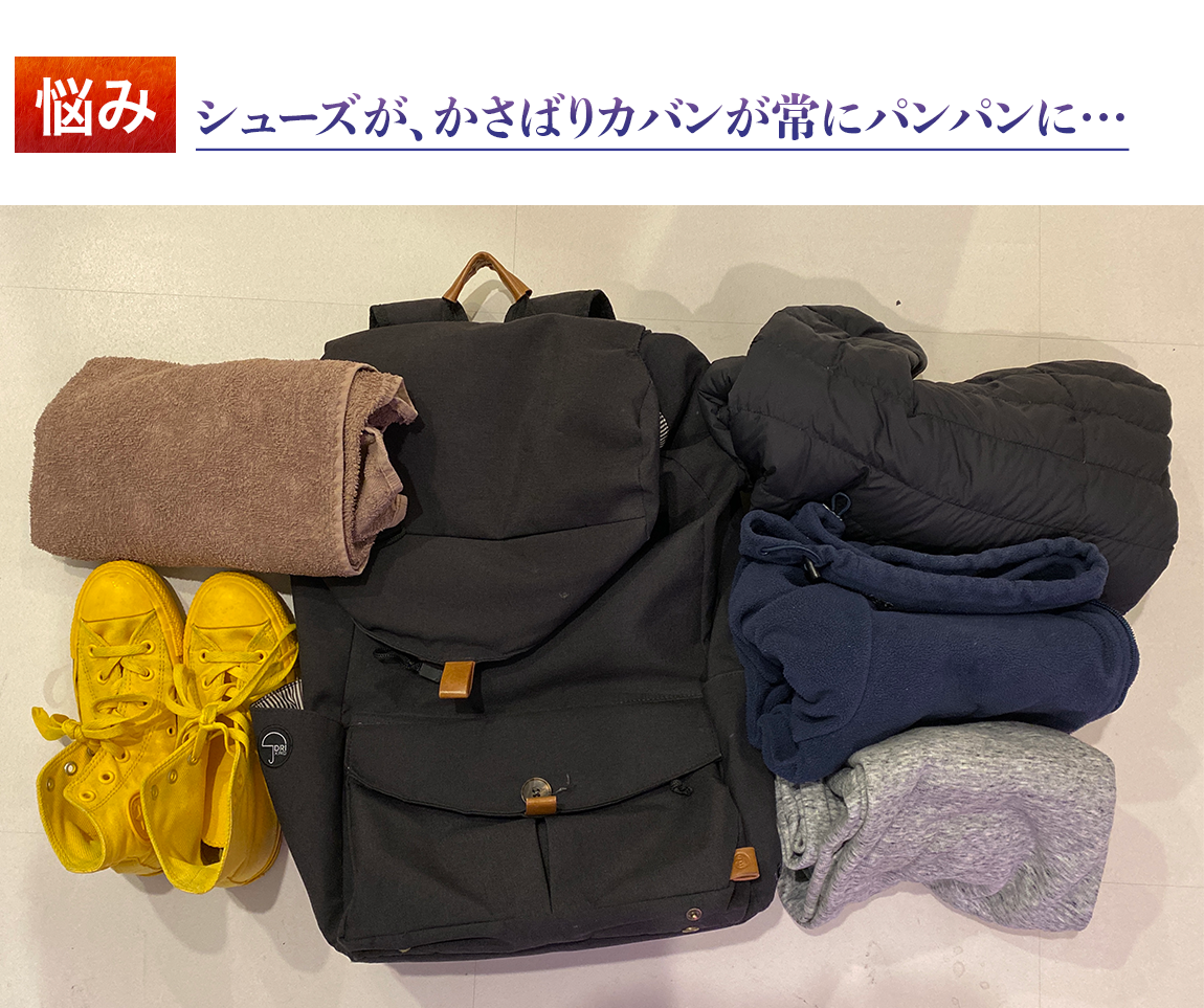 ジムやスポーツの練習、旅行やアウトドアでかさばるのは、たたんで持ち運ぶことができない靴の問題。