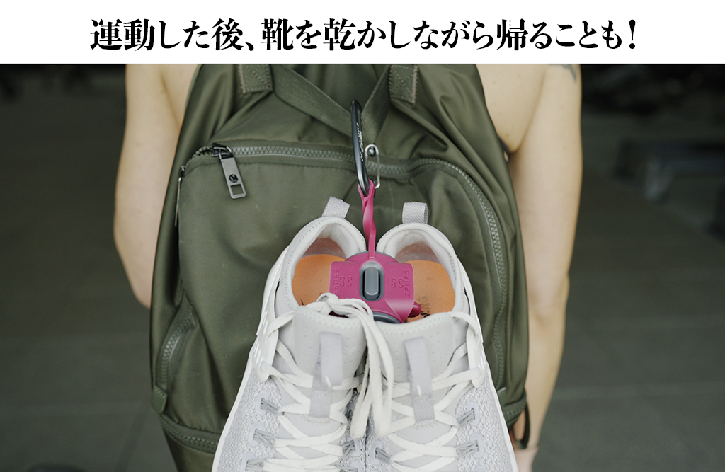 カバンに吊るして持ち歩くことにより、スポーツジムで大量の汗を吸いこんだシューズのムレや臭いの予防にもなります!