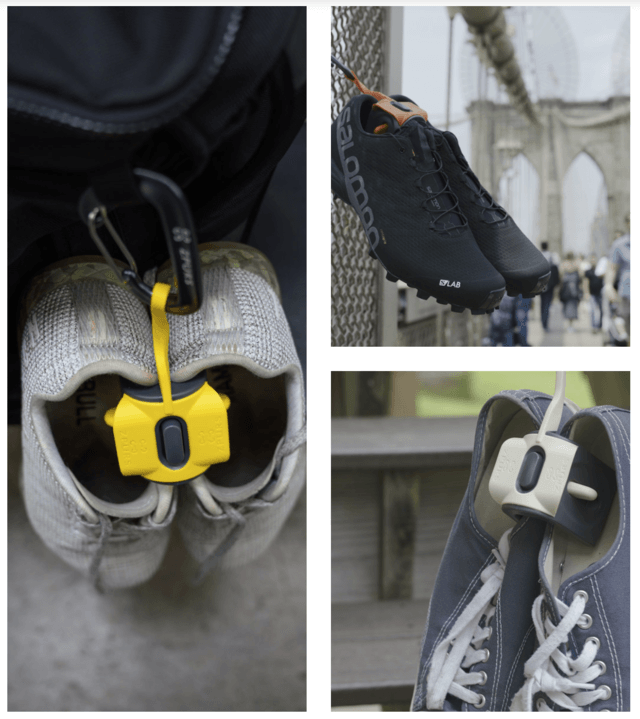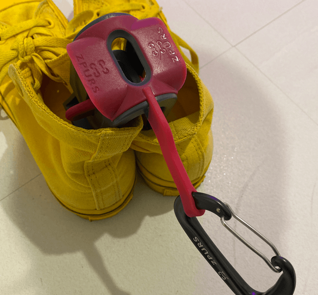 Zpurs(ジィパース)は、バッグやレール、またはフックに固定し、あらゆる世代が利用でき、あらゆるタイプの靴を保持できるシューズクリップへと進化しました。