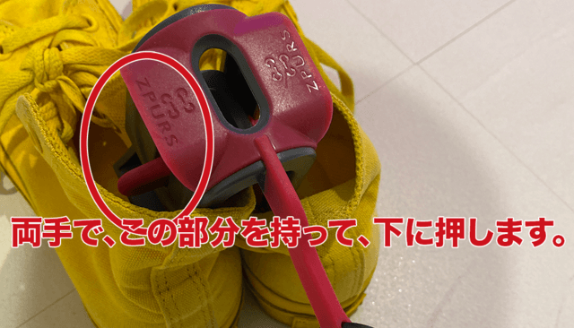1)左右のシューズを挟むように、ZPURS(ジィパース)をおきます。