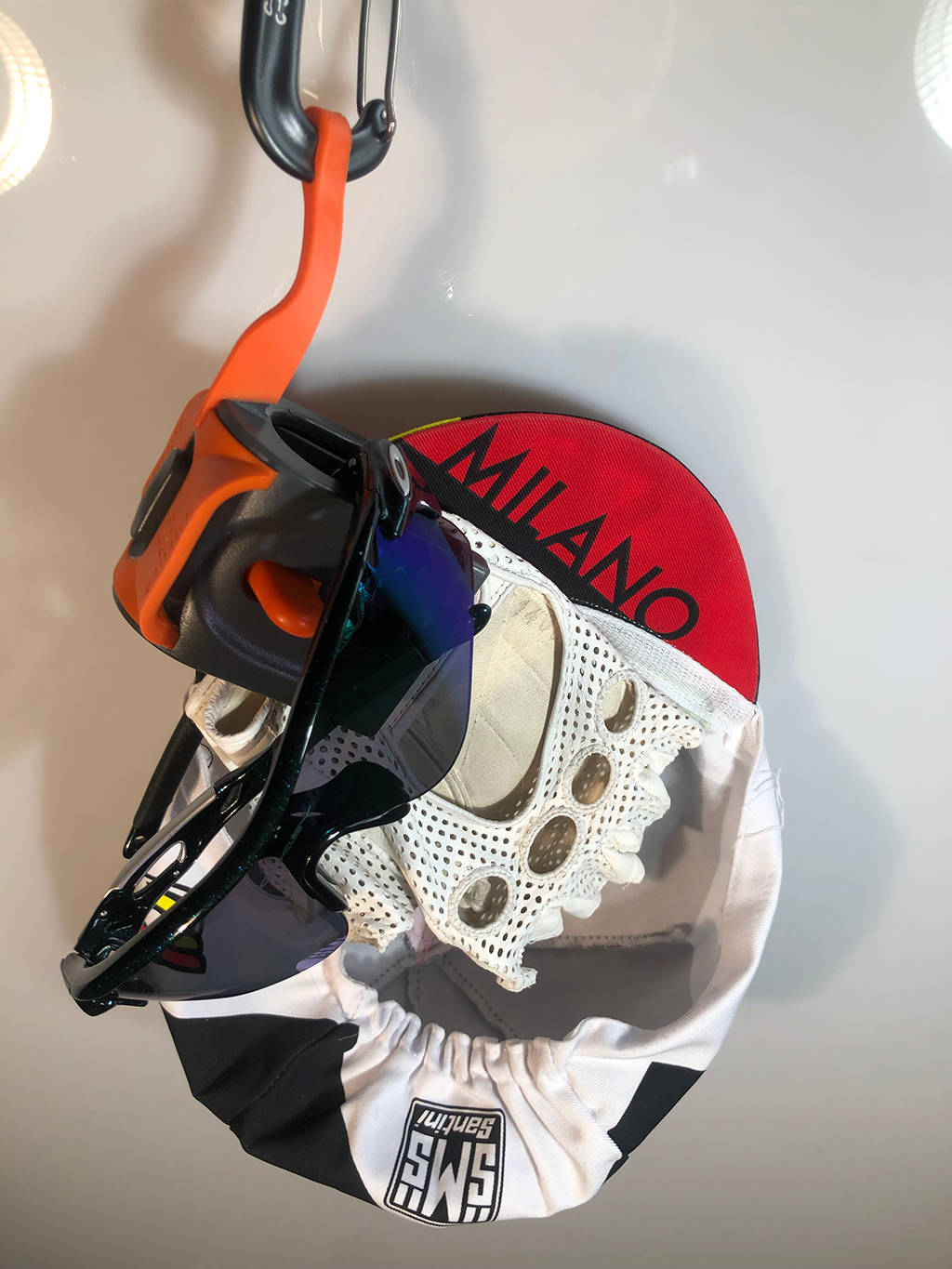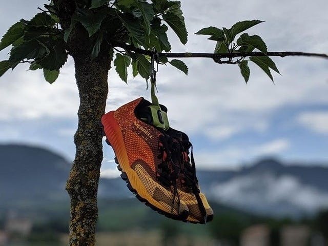 このときに、カラビナは、靴のかかとの方に来るように上から被せます。