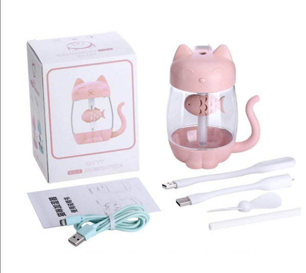 ピンク色のキティ加湿器を1体 「便利だにゃーロゴ(茶)」付き