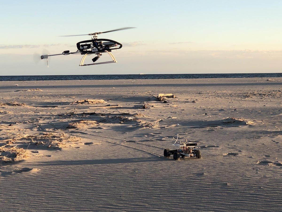 ここまでは、空からの探査について紹介しました。しかし、これだけでは足りません。空からの探査は短時間で広範囲の情報を取得できるといったメリットがありますが、特定の場所をピンポイントで探査するには向いていません。そこで、UAVからのデータを元に必要に応じてローバーを派遣し、詳細な探査を行わせるといった次のようなミッションを設定しました。