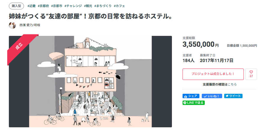 2020/04/26 13:34【クラウドファンディング最終日と近況報告】3月12日に始めた、クラウドファンディングでの特別プランの販売は、本日が最終日です!!すでに購入いただいた皆さま、拡散していただいた皆さまありがとうございます。温かいコメントに日々励まされています。事態がおちついたらまた京都に行きたい!NINIROOMの存続を応援したい!という方がまだいらっしゃいましたら、ぜひ!この機会に購入いただけると嬉しいです!!本日0時までです。暖かくなるころにはおさまっているかなあ〜という当初の淡い期待は大〜きく外れて、まだまだ終息の兆しが見えません。そのため、リターンの宿泊期限は2020年内としていましたが、「2021年末」まで延長しています。「はしご酒プラン」に関しても6月・7月ともに日程は延期→実施の3ヶ月前までに参加者にご連絡(都合がつかない場合は宿泊券として利用)と変更しています。今回のクラウドファンディングでは、こんなにもNINIROOMのことを思ってくれてる人がいると改めて知り、なんとしてでも事業継続してまたみなさんを楽しくお迎えしたいと、メラメラ再燃するよい機会になりました。最近は、NINI姉妹のこれまでのキャリアであるインテリアデザインやPR業務に加え、HOSTEL NINIROOMというプロジェクトのなかで培ってきたグラフィックデザインや情報発信、SNSの企画運用など、新しいお仕事を依頼いただき邁進しています。何をするか、何ができるか、何がしたいか。そしてチームNINIとしてどんな方向に向かうのか。離れているけどチーム力はより一層強くなった気がします。たくさんのゲストを迎えられる日常を夢見つつ、今はチームNINIとして経験の幅を広げていきたいです。お仕事のご依頼お待ちしております!株式会社NINIができること・デザイン(コンセプトデザイン, インテリア, グラフィック)・情報発信(プレスリリース, SNS企画運用, 翻訳, 多言語での取材, 動画制作など)・宿泊事業プロデュース, 事業再生 もっと見る